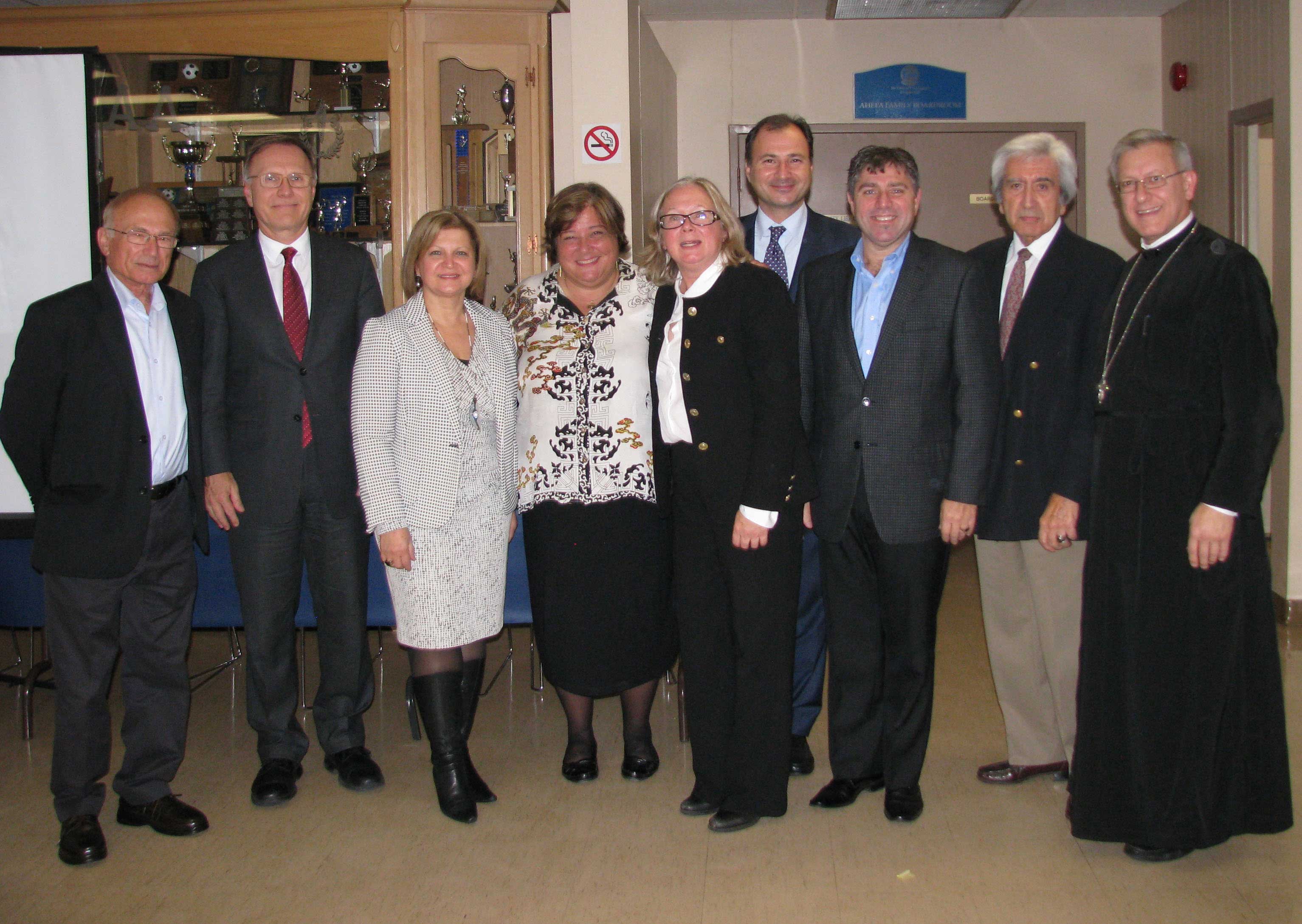 Members of Parnassos played a leading role in organizing a campaign to raise funds for the refugees arriving in Greece. Dr Chryssi Paraskevopoulos (fourth from left), a volunteer doctor and Parnassos and Hellenic Community members following a presentation on her experiences while serving the refugees