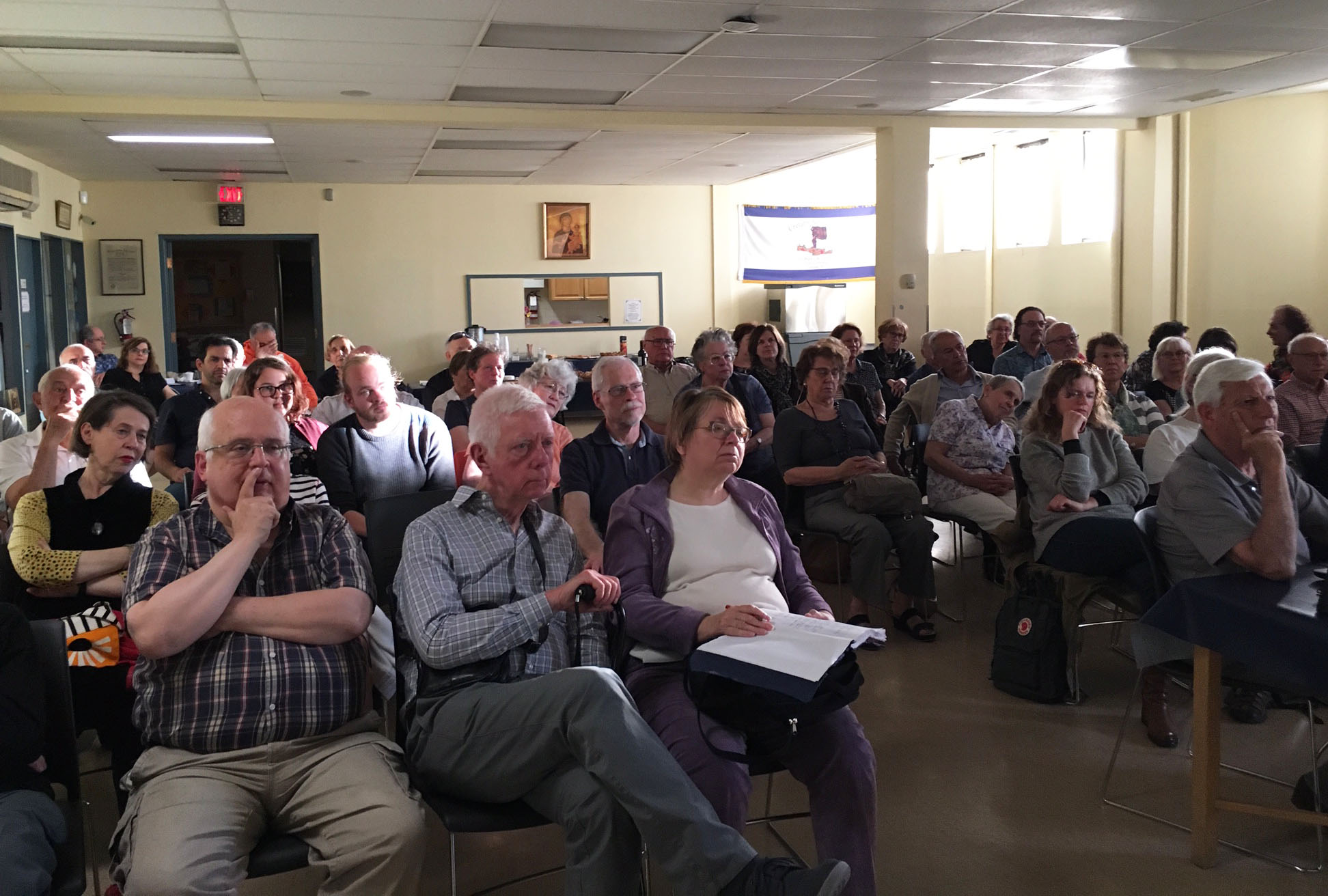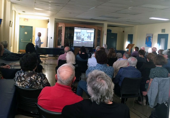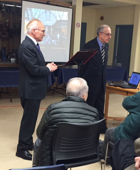 Andreas Vikis introducing Hassan Eltaher (left) to a packed audience (right)